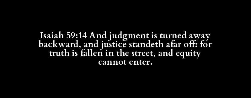 Isaiah 59:14 And judgment is turned away backward, and justice standeth afar off: for truth is fallen in the street, and equity cannot enter.