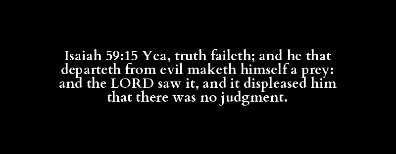 Isaiah 59:15 Yea, truth faileth; and he that departeth from evil maketh himself a prey: and the LORD saw it, and it displeased him that there was no judgment.