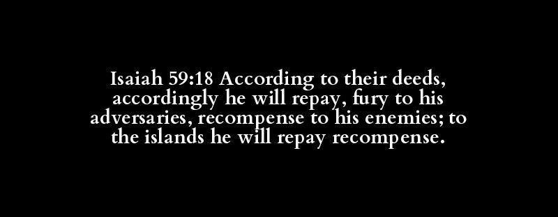 Isaiah 59:18 According to their deeds, accordingly he will repay, fury to his adversaries, recompense to his enemies; to the islands he will repay recompense.