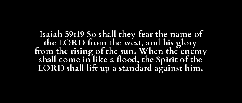 Isaiah 59:19 So shall they fear the name of the LORD from the west, and his glory from the rising of the sun. When the enemy shall come in like a flood, the Spirit of the LORD shall lift up a standard against him.