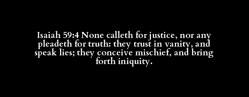 Isaiah 59:4 None calleth for justice, nor any pleadeth for truth: they trust in vanity, and speak lies; they conceive mischief, and bring forth iniquity.
