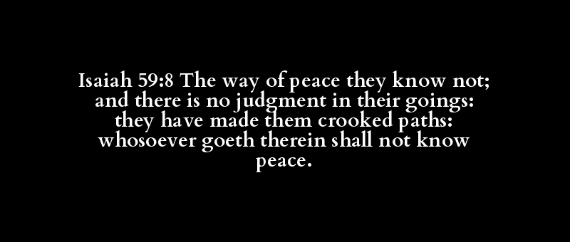 Isaiah 59:8 The way of peace they know not; and there is no judgment in their goings: they have made them crooked paths: whosoever goeth therein shall not know peace.
