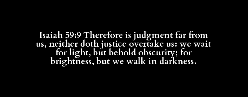 Isaiah 59:9 Therefore is judgment far from us, neither doth justice overtake us: we wait for light, but behold obscurity; for brightness, but we walk in darkness.