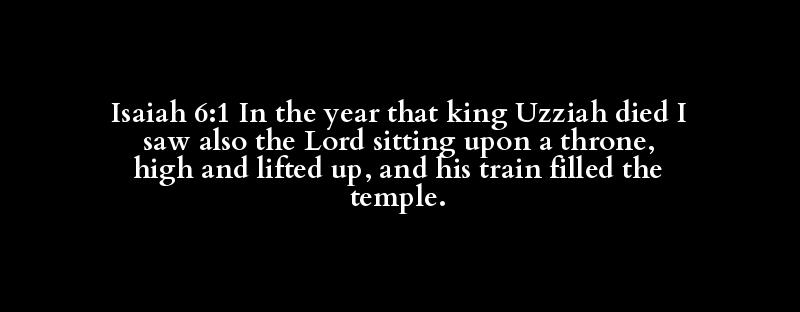 Isaiah 6:1 In the year that king Uzziah died I saw also the Lord sitting upon a throne, high and lifted up, and his train filled the temple.