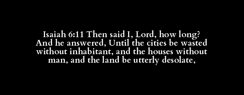 Isaiah 6:11 Then said I, Lord, how long? And he answered, Until the cities be wasted without inhabitant, and the houses without man, and the land be utterly desolate,