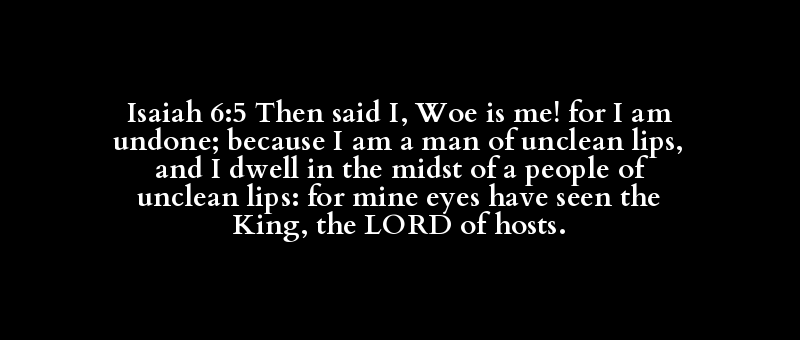Isaiah 6:5 Then said I, Woe is me! for I am undone; because I am a man of unclean lips, and I dwell in the midst of a people of unclean lips: for mine eyes have seen the King, the LORD of hosts.
