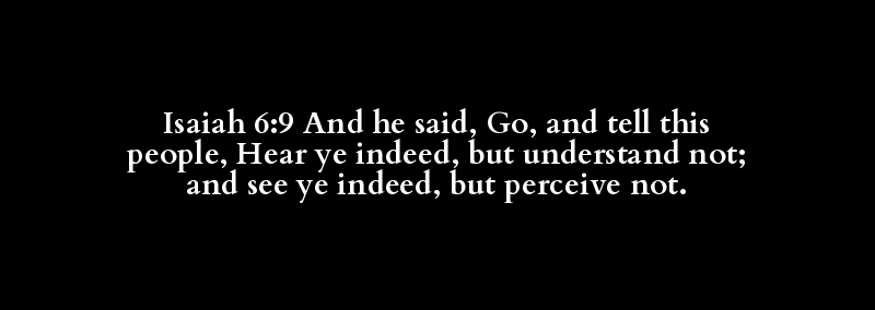 Isaiah 6:9 And he said, Go, and tell this people, Hear ye indeed, but understand not; and see ye indeed, but perceive not.