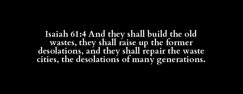 Isaiah 61:4 And they shall build the old wastes, they shall raise up the former desolations, and they shall repair the waste cities, the desolations of many generations.