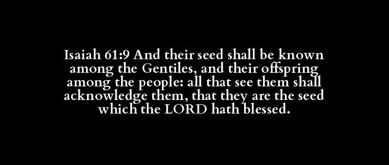 Isaiah 61:9 And their seed shall be known among the Gentiles, and their offspring among the people: all that see them shall acknowledge them, that they are the seed which the LORD hath blessed.