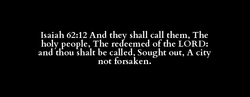 Isaiah 62:12 And they shall call them, The holy people, The redeemed of the LORD: and thou shalt be called, Sought out, A city not forsaken.