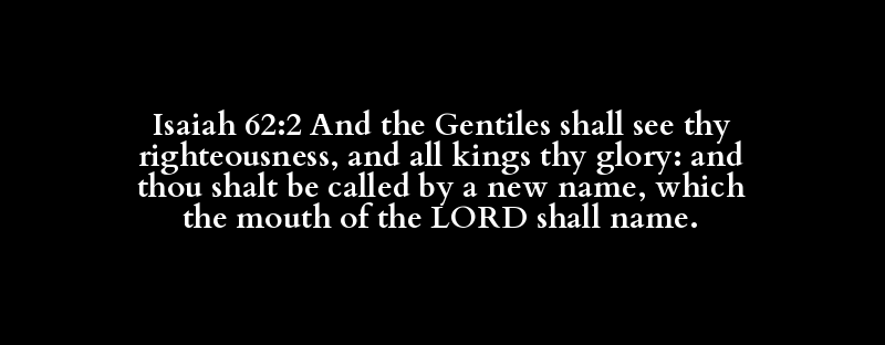 Isaiah 62:2 And the Gentiles shall see thy righteousness, and all kings thy glory: and thou shalt be called by a new name, which the mouth of the LORD shall name.