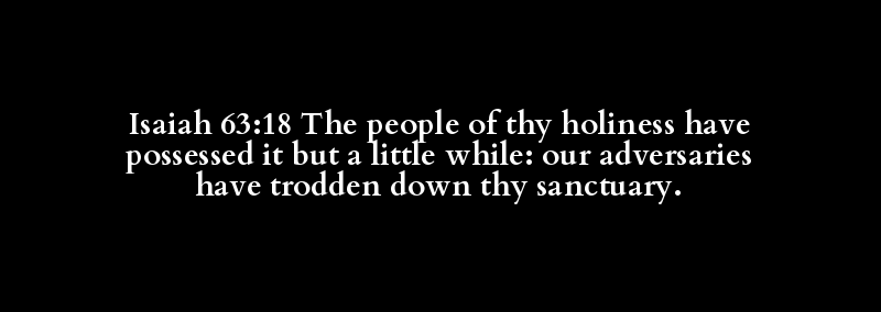 Isaiah 63:18 The people of thy holiness have possessed it but a little while: our adversaries have trodden down thy sanctuary.