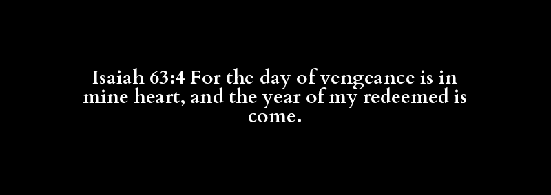 Isaiah 63:4 For the day of vengeance is in mine heart, and the year of my redeemed is come.