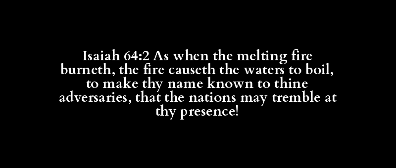 Isaiah 64:2 As when the melting fire burneth, the fire causeth the waters to boil, to make thy name known to thine adversaries, that the nations may tremble at thy presence!