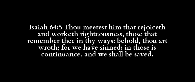 Isaiah 64:5 Thou meetest him that rejoiceth and worketh righteousness, those that remember thee in thy ways: behold, thou art wroth; for we have sinned: in those is continuance, and we shall be saved.