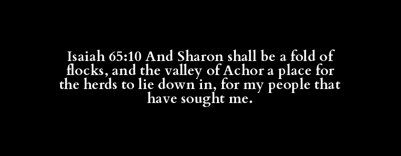 Isaiah 65:10 And Sharon shall be a fold of flocks, and the valley of Achor a place for the herds to lie down in, for my people that have sought me.