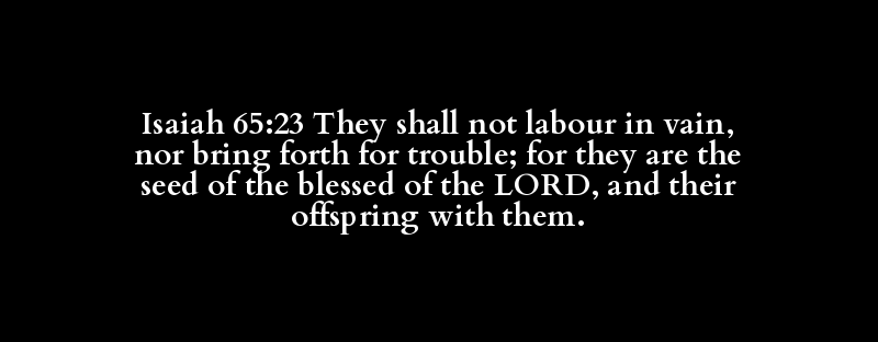 Isaiah 65:23 They shall not labour in vain, nor bring forth for trouble; for they are the seed of the blessed of the LORD, and their offspring with them.