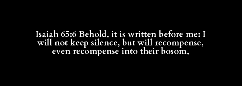 Isaiah 65:6 Behold, it is written before me: I will not keep silence, but will recompense, even recompense into their bosom,