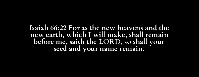 Isaiah 66:22 For as the new heavens and the new earth, which I will make, shall remain before me, saith the LORD, so shall your seed and your name remain.