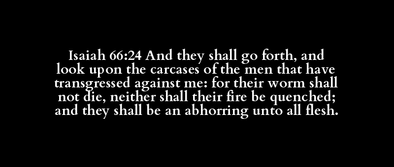 Isaiah 66:24 And they shall go forth, and look upon the carcases of the men that have transgressed against me: for their worm shall not die, neither shall their fire be quenched; and they shall be an abhorring unto all flesh.