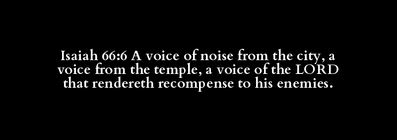 Isaiah 66:6 A voice of noise from the city, a voice from the temple, a voice of the LORD that rendereth recompense to his enemies.
