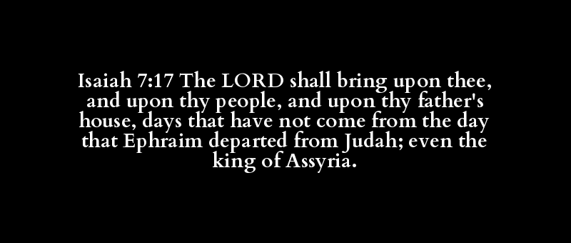 Isaiah 7:17 The LORD shall bring upon thee, and upon thy people, and upon thy father's house, days that have not come from the day that Ephraim departed from Judah; even the king of Assyria.