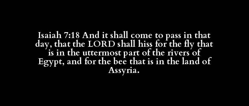 Isaiah 7:18 And it shall come to pass in that day, that the LORD shall hiss for the fly that is in the uttermost part of the rivers of Egypt, and for the bee that is in the land of Assyria.