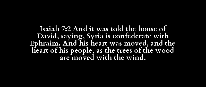 Isaiah 7:2 And it was told the house of David, saying, Syria is confederate with Ephraim. And his heart was moved, and the heart of his people, as the trees of the wood are moved with the wind.