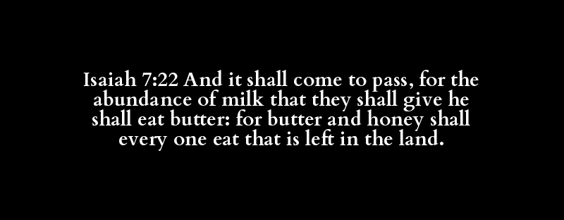 Isaiah 7:22 And it shall come to pass, for the abundance of milk that they shall give he shall eat butter: for butter and honey shall every one eat that is left in the land.