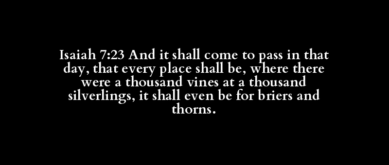 Isaiah 7:23 And it shall come to pass in that day, that every place shall be, where there were a thousand vines at a thousand silverlings, it shall even be for briers and thorns.