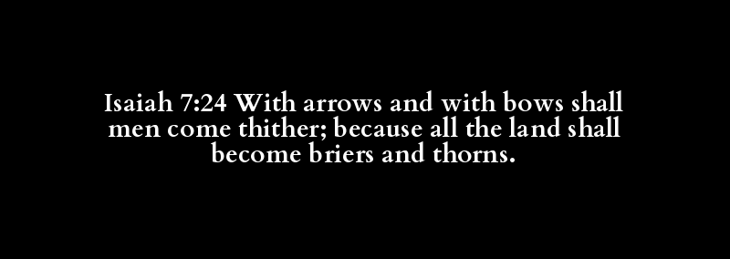 Isaiah 7:24 With arrows and with bows shall men come thither; because all the land shall become briers and thorns.