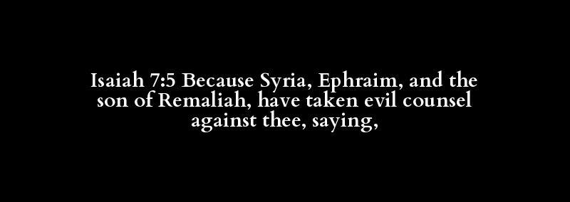 Isaiah 7:5 Because Syria, Ephraim, and the son of Remaliah, have taken evil counsel against thee, saying,