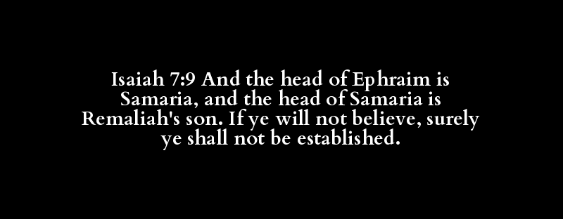 Isaiah 7:9 And the head of Ephraim is Samaria, and the head of Samaria is Remaliah's son. If ye will not believe, surely ye shall not be established.