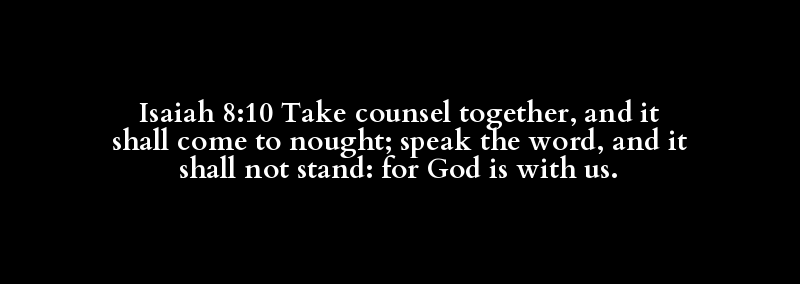 Isaiah 8:10 Take counsel together, and it shall come to nought; speak the word, and it shall not stand: for God is with us.