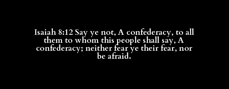 Isaiah 8:12 Say ye not, A confederacy, to all them to whom this people shall say, A confederacy; neither fear ye their fear, nor be afraid.