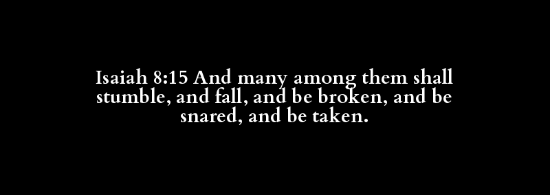 Isaiah 8:15 And many among them shall stumble, and fall, and be broken, and be snared, and be taken.