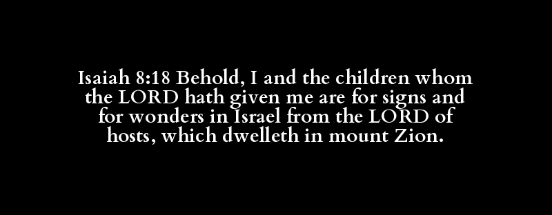 Isaiah 8:18 Behold, I and the children whom the LORD hath given me are for signs and for wonders in Israel from the LORD of hosts, which dwelleth in mount Zion.