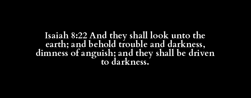 Isaiah 8:22 And they shall look unto the earth; and behold trouble and darkness, dimness of anguish; and they shall be driven to darkness.