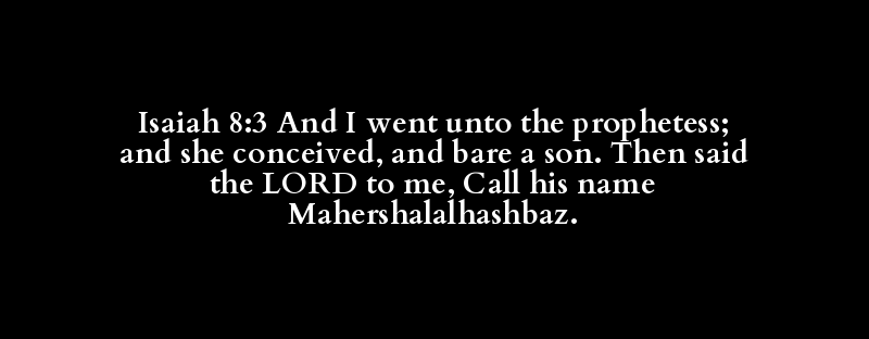 Isaiah 8:3 And I went unto the prophetess; and she conceived, and bare a son. Then said the LORD to me, Call his name Mahershalalhashbaz.