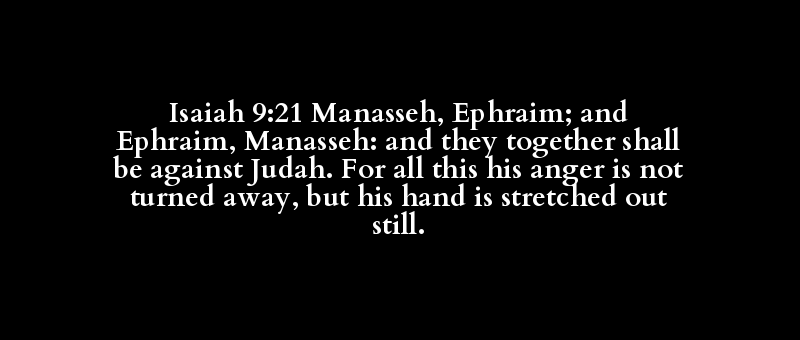 Isaiah 9:21 Manasseh, Ephraim; and Ephraim, Manasseh: and they together shall be against Judah. For all this his anger is not turned away, but his hand is stretched out still.