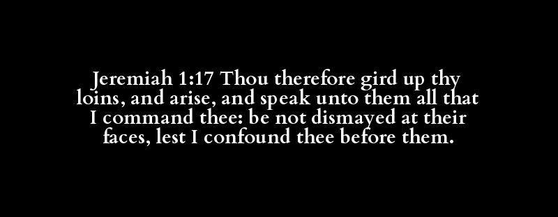 Jeremiah 1:17 Thou therefore gird up thy loins, and arise, and speak unto them all that I command thee: be not dismayed at their faces, lest I confound thee before them.