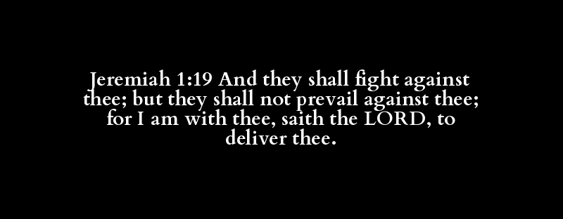 Jeremiah 1:19 And they shall fight against thee; but they shall not prevail against thee; for I am with thee, saith the LORD, to deliver thee.