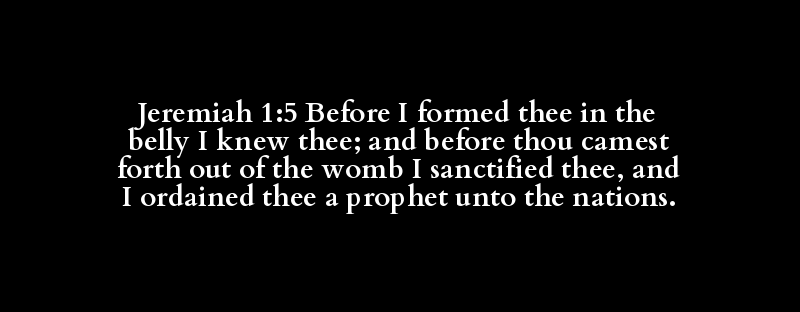 Jeremiah 1:5 Before I formed thee in the belly I knew thee; and before thou camest forth out of the womb I sanctified thee, and I ordained thee a prophet unto the nations.