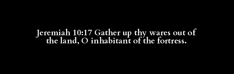 Jeremiah 10:17 Gather up thy wares out of the land, O inhabitant of the fortress.