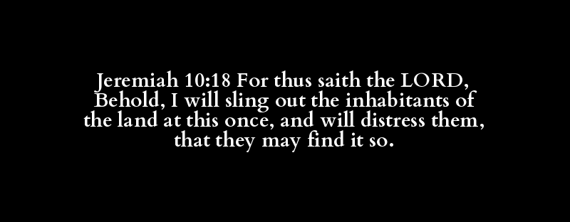 Jeremiah 10:18 For thus saith the LORD, Behold, I will sling out the inhabitants of the land at this once, and will distress them, that they may find it so.