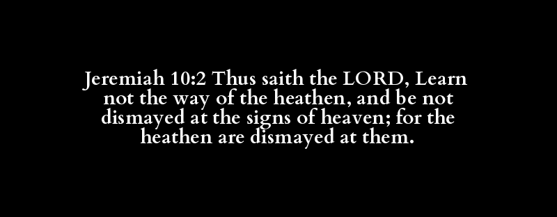 Jeremiah 10:2 Thus saith the LORD, Learn not the way of the heathen, and be not dismayed at the signs of heaven; for the heathen are dismayed at them.
