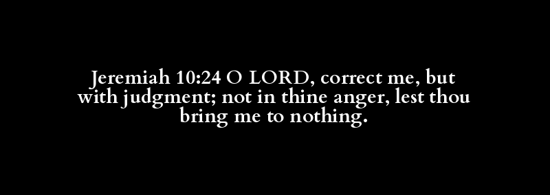 Jeremiah 10:24 O LORD, correct me, but with judgment; not in thine anger, lest thou bring me to nothing.