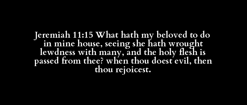 Jeremiah 11:15 What hath my beloved to do in mine house, seeing she hath wrought lewdness with many, and the holy flesh is passed from thee? when thou doest evil, then thou rejoicest.