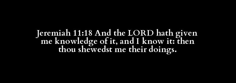 Jeremiah 11:18 And the LORD hath given me knowledge of it, and I know it: then thou shewedst me their doings.