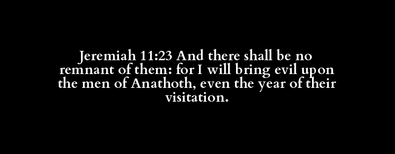 Jeremiah 11:23 And there shall be no remnant of them: for I will bring evil upon the men of Anathoth, even the year of their visitation.